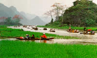 The Huong Pagoda (Perfume Pagoda) is a complex of pagodas set amidst mountains, forests, lakes and caves, surrounded by vast green rice-growing plains, about 75 km from Southwest of Hanoi. A boat ride on the Yen Vi Stream through the green paddies to the mountain where the pagodas is located is interesting. The main pagoda is situated on the top of a mountain. Many people believe that this is a place where the deities purify souls, cure sufferings, and grant offspring to childless families. Going to the Huong Pagoda must be a good chance of boating, hiking and relaxation.