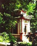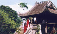 Built in 1049 under the Ly dynasty, to the west of the city, this square wooden pagoda rests on one pillar in the middle of a green lotus pond. Legends said that King Ly Thai To was old but had no son. One night, in a dream the king saw the goddess of Mercy sitting on a lotus flower offering him a male child. Shortly after that the queen got pregnant and she gave birth to a son. The king thanked the goddess by ordering the construction of this pagoda in the form of a lotus and named it Dien Huu, meaning long lasting happiness and good luck.