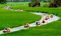 They are adorned with beautiful stalactites and stalagmites in different shapes and colors, sparkling line gemstone. Tam Coc cave include in Hang Ca, Hang Hai and hang Ba cave. Around cave through the rice-fields to the temple in memory of Kings of the Tran Dynasty, who fought against the Mongolians in 13th century.