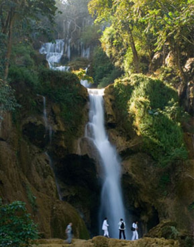 After visiting the cave one more hour of trekking brings us to one of the many springs which feeds Kuang Xi waterfalls, here a beautiful pool full of sacred fish can be seen. After descending from the top of the waterfall we enjoy a Lao style lunch (see supplement) amongst some beautiful settings!