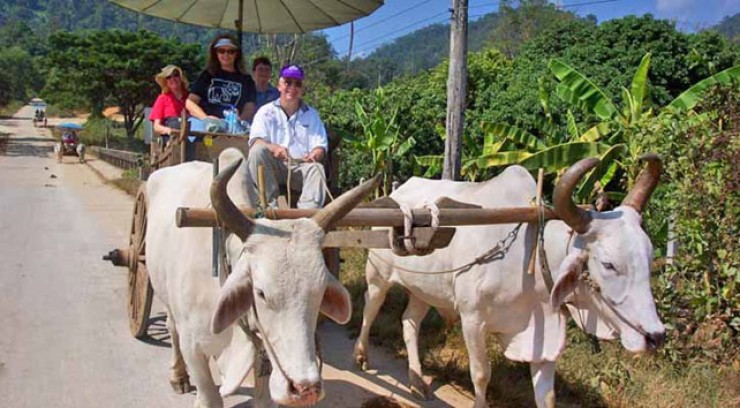 Experience trekking with an ox or buffalo cart ride to visit the beauty of the surrounding landscape, along the way discovering seasonal farming methods and other daily activities of local people. The cart is custom designed for your comfort with mat, pillows and roof made from palm leaves. Walk through rural communities, meet local families, learn mat weaving and making traditional palm-leaf cakes boxes. During your trip you will receive information concerning flora, including useful wild and home-grown plants. Your visit ends at the local market to see the diversity of fresh countryside products.