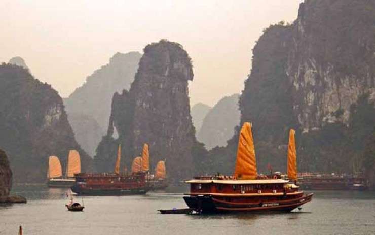 Day 4: HANOI - HALONG BAY - HANOI (by A/C car 175km, a Cruising tour by wooden junk) Upon arrival in Halong bay, transfer to the Marina for a 4-hours cruising tour by a big wooden Junk on Ha Long Bay constituted by 3000 small and big islands of all shapes. In 1994 UNESCO classified Halong Bay as a World Natural Heritage and in November 2000, the World Heritage Committee reconfirmed this classification, your excursion to Halong Bay will re-evaluate the classification of UNESCO to this fairyland. In the book intituled "Wonders of the World" published in 1950. The French marshal Lyautey compared it with Venice rocks in the "Letters of Tonkin and Madagascar" (June 24, 1895). The French novelist Yvonne Schultz did not hesitate to praise the miraculous beauty of this bay: All heights and ten thousand forms; imagination, imitation, pagodas, Hindu temples, menhirs, Chinese towers, pieces of chess-board or true immense mountain. And the extraordinary flows simulating the ruined keeps, the broken down bastions, a succession of palaces with open belly & tribes of mutilated idols. HALONG BAY is nearly a hidden bay with thousands of limestone islands densely rising from the blue jade water in a sea area of over 1500 square kilometers. Its 1969 green islands enfeeble the strong winds blowing from the ocean to leave the transparent water of the bay often calm in cool and healthy air. From time to time, sailing Junk appearing and disappearing between the islands make the poetic sight more colorful like sparkling pearls or coral reefs found out in the bay. The beauty of the bay is not monotone, at different positions of viewing, it will astonish viewers with quite different fascinations. In the caves and grottoes of stone islands, visitors will discover and admire how many impressive stalactites and stalagmites. The caves have strange but very accurate names, have their own legends in their names as Thien Cung (Heaven Palace) grotto, Dau Go (Wooden Head) grotto, stop-over to visit the caves, your sailing Junk will continue to visit around the shapely islets of fighting cock, incense-burner and others. You will have a romantic lunch with very fresh sea-food on-board, since after visit the floating-rafts/houses of living sea-food, taste the specialties of Halong Bay is quite a life-time experience. The Junk sailing back to Marina and drive to hanoi. Overnight in Hanoi (B)