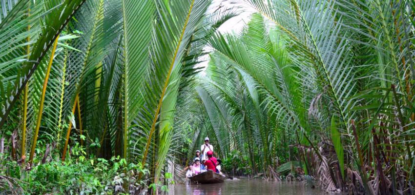 Breakfast at hotel. 08:30am Check out and our guide will pick up you at hotel for excursion to Bana Hills and reach the Cable Car Station. - Spend your time on the most modern Cable Car in Southeast Asia, visit Dream Stream Cable car Station and see the panorama of Quang Nam - Da Nang City on high. - After finishing the first cable car, you will visit The Golden Bridge - which has the most exotic structure and also the world's most prominent pedestrian bridges highlighted by the British Guard newspaper, France wine cellar, Le Jardin D’amourn (consists of 9 gardens), Linh ung pagoda. - Continue the 2nd Cable Car to visit the French Village - enjoy Street Music, watch Art’s statue, Campanile, Nine Floor Goddess Shrine, Tombstone Temple, Watch Carnival Performance Show, Square Du Dome ... Challenge the most popular adventure ride - Roller Coaster … - Buffet Lunch at Restaurant on Ba Na Hills (Your own cost). -Take the Lava Train from Sun Kingdom to many new attractions for check-in such as Helios waterfall, Time Gate, and The Moon Kingdom … - Join in Fantasy Park by Walking in Fairy Forest, discovering Dinosaur Park, playing 5D Wild West, enjoying 4D Death Race Ride, watch 3D Mega 360 Degrees, ride on Journey into the underground, enter Jurassic Park, challenge Free-fall Tower and participate in an adventure in Horror House and over 90 free games. - Wax Museum at your own cost. Return to the Cable Car station to depart Ba Na Hills. Then drive straight to Da Nang Airport for afternoon flight to Saigon. Arrive at the Tan Son Nhat airport via an internation flight, warm welcome to everybody, a moment of courtesy meeting of the tour guide in the meeting point's Tan Son Nhat Airport. Saigon or Ho Chi Minh City, a young city with the age of more than 300 years, a centre of culture, education, commerce and tourism of Vietnam, the biggest city of Vietnam mix with the West and the Orient, and once known as the "Pearl of Far East". Transfer to hotel for check-in and have short rest. Overnight in Saigon. (Breakfast) Day 8: SAIGON – CU CHI TUNNELS – CITY (By A/C vehicle 60km) Breakfast at hotel. 08:30 Morning depart to Cu Chi Tunnels located at the threshold of Saigon and adjacent to the revolutionary base, played an important role in the two wars on before 1975. Visitors will have a lot of questions as knowing that Cu Chi was an "underground village" with its labyrinth of interlaced tunnels having a combined length of more than 200 km of tunnels built here by the Communist guerrillas are the highlight of South Vietnam tours. You will be guided to the bedrooms, meeting rooms, air-raid shelters, smokeless kitchens, and experience life underground during your short visit to this extraordinary tunnel complex. Opportunity to crawl into the tunnels for discovering and hearing all things of it. You can also try shooting with real bullets here (your own account). Then, you will visit Neo-Roman Notre Dame Cathedral - one of the most splendid and typical of the beautiful French-built churches in Ho Chi Minh city, next Municipal Post Office - Saigon's French-style main post office to admire and take photos of its nice architecture that is one of the Ho Chi Minh City’s symbolizing images. Followed up, you will visit to the Reunification Palace – a symbol of Saigon old Government before 1975, (also called former President Palace) to learn the sorrowful historic of Vietnam Ideology War from 1954-1975. Later, pass by Ho Chi Minh City People Committee (also the old French City Hall before 1975), and Municipal Theatre built in 1899. Then, visit to the War Remnants Museum where you will listen to about and feel how the wars of resistance against the old and new colonial powers, get the experience of the American War in Vietnam. Left time is saved for you to do shopping at Ben Thanh Market – a most typical market of Vietnam, is a big marketplace in the downtown area of Ho Chi Minh City, with how many things are available for your choice. The market is one of the earliest surviving structures in Saigon and today is considered one of symbols of Ho Chi Minh City, popular with tourists seeking local handicrafts, textiles, áo dài (traditional long-dress for female Vietnamese), and souvenirs, as well as local cuisine. Then, drive to hotel for short rest. Overnight in Saigon. (Breakfast) Day 9: SAIGON - MEKONG RIVER DELTA (MY THO) (by A/C vehicle 70km, motor-boat, rowing-boat) After breakfast, take an interesting excursion to Mekong Rivers, overland 70 kilometers to My Tho town - the "Gateway of Mekong River and its Delta". Mekong Delta - the rice granary of Vietnam and has vast areas of durian, mango, rambutan and other delicious tropical fruit trees.