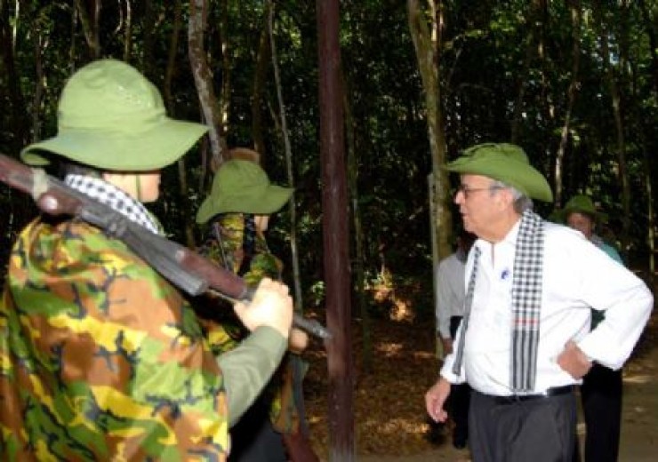 Day 5: HOI AN ANCIENT TOWN/ DANANG - SAIGON - CU CHI TUNNELS (by A/C car, plane) After breakfast, check out and transfer to Noi Bai airport for domestic flight VN 1313 DAD/SGN at 11.15-12.25 to Saigon or Ho Chi Minh City, a young city with the age of more than 300 years, a centre of culture, education, Leaving airport for excursion to Cu Chi Tunnels located at the threshold of Saigon and adjacent to the revolutionary base, played an important role in the two wars on before 1975. Visitors will have a lot of questions as knowing that Cu Chi was an "underground village" with its labyrinth of interlaced tunnels having a combined length of more than 200 km of tunnels built here by the Communist guerrillas are the highlight of South Vietnam tours. You will be guided to the bedrooms, meeting rooms, air-raid shelters, smokeless kitchens, and experience life underground during your short visit to this extraordinary tunnel complex. Opportunity to crawl into the tunnels for discovering and hearing all things of it. You can also try shooting with real bullets here (your own account). Evening, we highly recommend a farewell dinner cruise on floating restaurant and getting the admirable feel of the charming views of Saigon river and city-by-night during a short river-cruising. (see supplement) Drive back to the hotel and free leisure at hotel. Overnight in Saigon. (B)