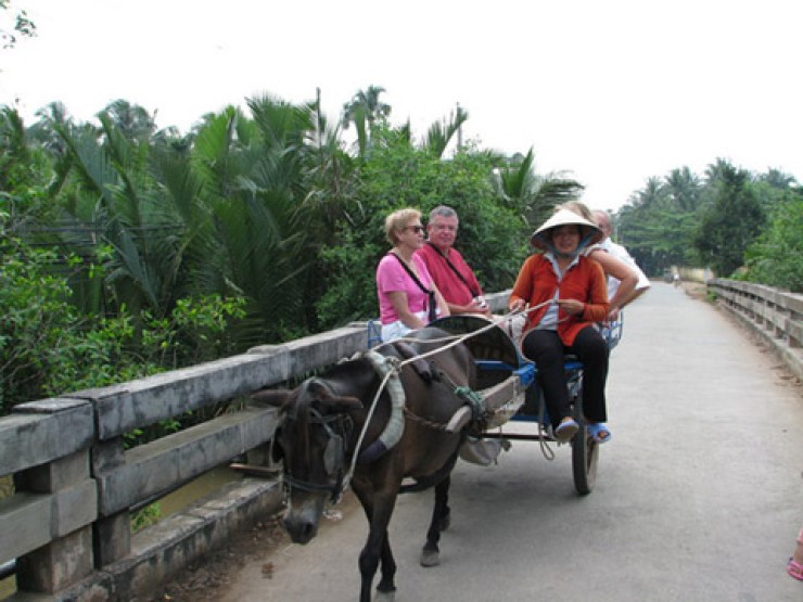 Day 6: SAIGON - MEKONG RIVERS ( MY THO ) (by A/C car 70km, motor-boat, rowing-boat) After br Arrival My Tho and transfer to the bank of Mekong River, take a motor river-boat which to be rent exclusively for the group then crossing the Upper River and cruising along Tan Long Peninsula, let’s enjoy this golden moment to relax the verdant luxuriant sceneries of the watery region, taste very fresh coconut milk, disembark and visit a island, stop-over a handicraft village that produces house-hold items from materials of coconut trees. Walking on the quite country roads, you will reach to local lush orchards, taste delicious fresh fruits, drink hot tea with honey during the traditional melodies and folk music surround you. From here you can observe the life of the Mekong River Delta, the main source of rice and many other agricultural products of Vietnam. Enjoy also a short tilbury carriage tour on the village road. Take boat trip along the canal network with a bit of adventure mood in Ben Tre Province to visit a bee farm and then a coconut candy workshop. Till now rivers and artificial canals are an important circulation system of the Mekong Delta. Lunch will be served to you in a garden restaurant with the specialties of the Delta (see supplement). Overnight in Sai gon. (B)